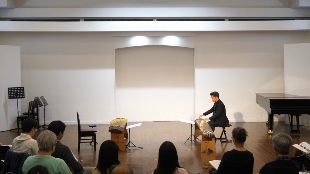 プログラムの最期を飾るのは、日本文化にも造詣が深く、また邦楽器にも深く精通した作曲家、ユハ・T・コスキネンによる箏のための作品―《碓氷》、《天浮橋》《イザナミの涙》の三作です。演奏は箏奏者である吉澤延隆さんによるものでしたが、本作はまさにコスキネン氏と吉澤さんの長年に渡るコラボレーションの中で生み出された作品であり、ある意味においては両国の交流の結晶とも言える音楽と言えるでしょう。その音楽は単純に「日本的な静けさ」や「わび・さび」といった日本の精神性の模倣に留まらず、作曲家のイマジネーションによって更なる普遍性へと昇華されたような、類を見ない幽玄な世界を描いていたように感じました。また、これらは十七絃箏と十三絃箏のためにそれぞれ書かれた作品ですが、吉澤さんはこの二つの楽器を向かい合わせるように配置し、交互に楽器を行き来するような演出を加えられ、さらに集中度を増した舞台となっていました。